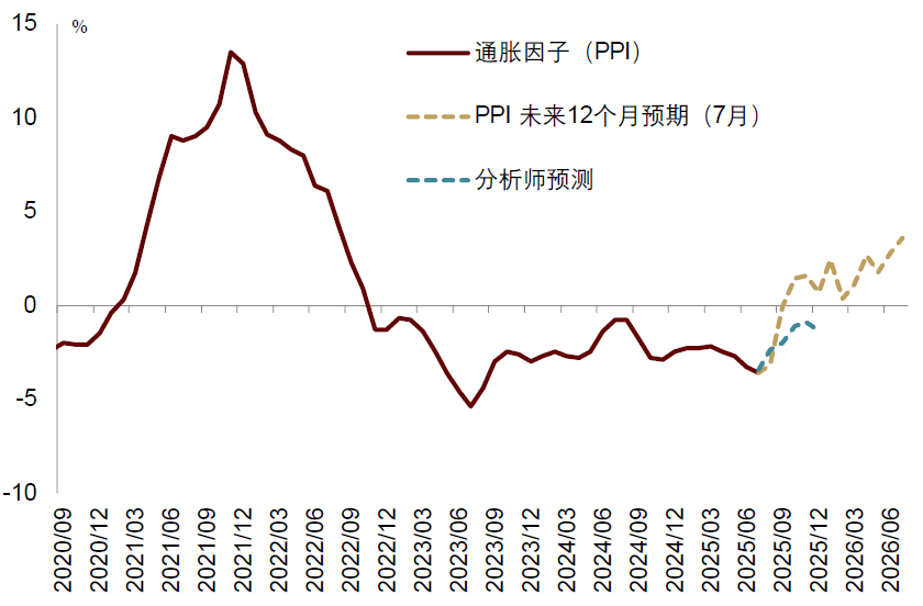 图表3:股市隐含PPI高于宏不雅分析师预期