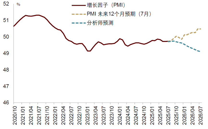 图表2:股市隐含PMI高于宏不雅分析师预期