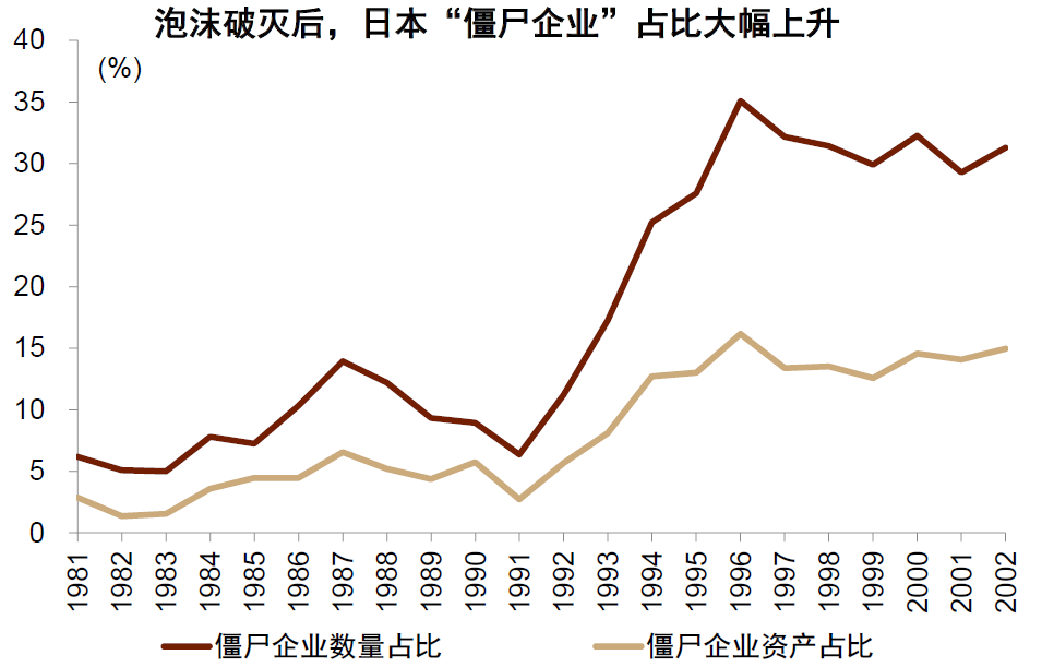 贵府来源:Caballero, Ricardo J., Takeo Hoshi, and Anil K. Kashyap. 2008. “Zombie Lending and Depressed Restructuring in Japan.” American Economic Review, 98 (5): 1943-77.,中金公司计划部